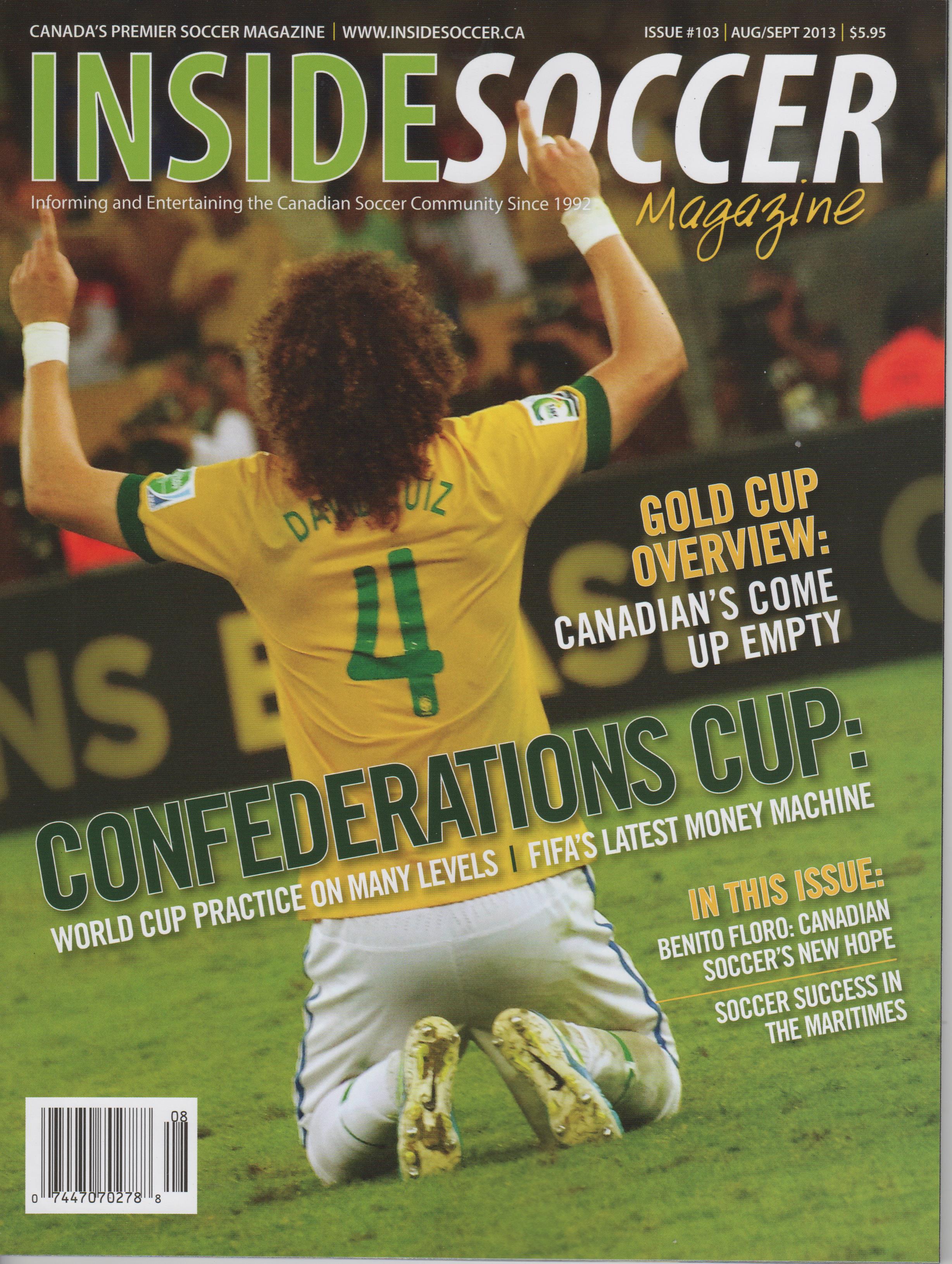 Soccer Fitness President Richard Bucciarelli’s article “Using Treadmills to Improve Sprinting: a Pilot Study by Soccer Fitness” has been published in the latest issue (#103: August/September, 2013) of Inside Soccer Magazine. The article comprises a summary of Soccer Fitness’ recent research study, undertaken by Richard, as well as Soccer Fitness Head Trainer Matija Vugrinicek, and SC Toronto Club Head Coach Justin Cresser, to look into the effects of a repeated sprint training protocol involving the Soccer Fitness high speed/high incline running treadmill protocols used in the Soccer Fitness Training Centre. The study, which compared a 6-week treadmill training protocol to a 6-week “ground-based” protocol, found that the treadmill training elicited significant improvements in running speed, along with similar improvements in endurance, as opposed to the ground-based protocol. “I was very pleased with the results of our study”, commented Richard. “And I am even more pleased to have the opportunity to share these results with the readers of Inside Soccer Magazine.” “We have known for years that our treadmill training protocols were very effective at improving speed and endurance in soccer players, however, now for the first time we have been able to prove scientifically just how effective this type of training really is.”